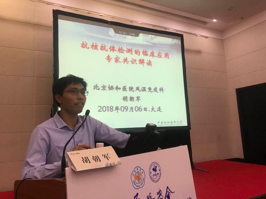 衛(wèi)星會(huì)特邀上海交通大學(xué)醫(yī)學(xué)院附屬仁濟(jì)醫(yī)院檢驗(yàn)科李敏主任擔(dān)任嘉賓主持,北京協(xié)和醫(yī)院風(fēng)濕免疫科胡朝軍研究員為現(xiàn)場同仁帶來抗核抗體檢測的臨床應(yīng)用專家共識(shí)解讀。現(xiàn)場與會(huì)者熱情滿滿,座無虛席。