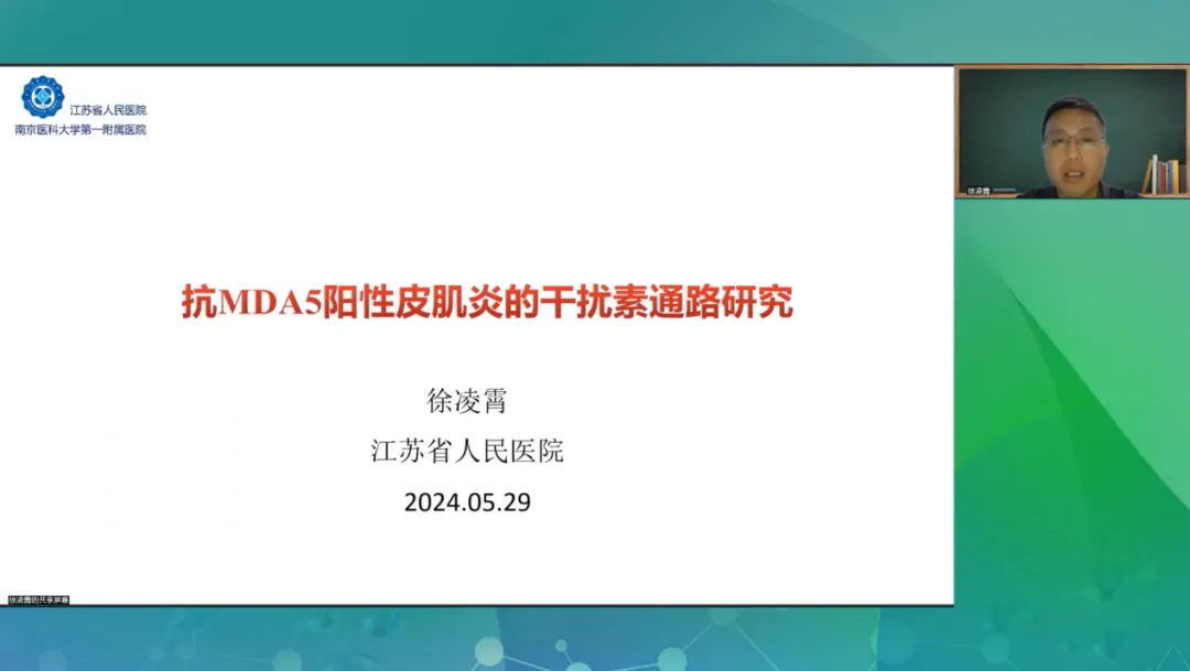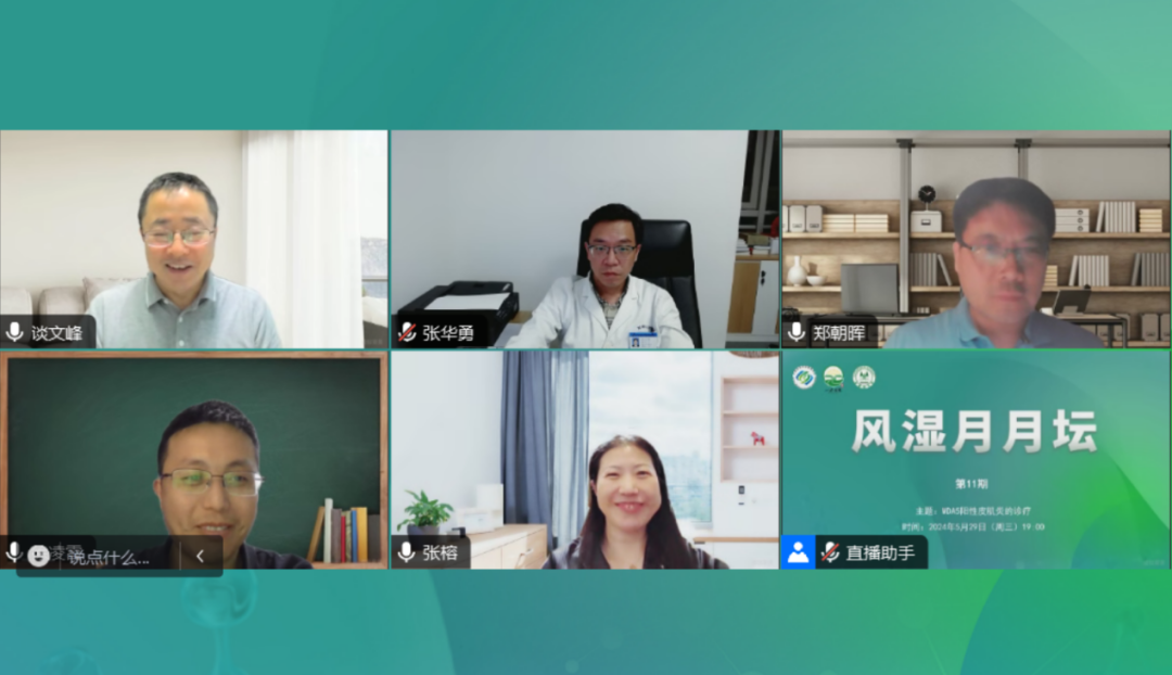 2024年5月29日,由江蘇省研究型醫院學會和一味書院主辦的《風濕月月壇(第11期)—MDA5陽性皮肌炎的診療》于線上成功舉行。本次論壇由南京醫科大學第一附屬醫院談文峰教授擔任大會主席,江蘇省人民醫院徐凌霄教授、中國醫科大學附屬第一醫院張榕教授作為講課嘉賓,南京大學醫學院附屬鼓樓醫院張華勇教授、空軍軍醫大學第一附屬醫院鄭朝暉教授作為本次大會的討論嘉賓。
