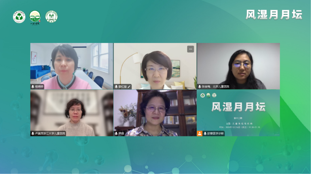 2024年10月16日(周三),由中國老年保健協會和一味書院主辦的《風濕月月壇(第13期)—兒童免疫性疾病》于線上成功舉辦。本次論壇由南中國醫科大學附屬第一醫院楊娉婷教授擔任大會主席,中國醫科大學附屬第一醫院姜紅堃教授、北京兒童醫院張俊梅教授作為講課嘉賓,浙江大學醫學院附屬兒童醫院盧美萍教授、武漢兒童醫院尹薇教授作為本次會議的討論嘉賓。